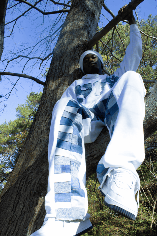 windowpane inset sweatpants [white/indigo]